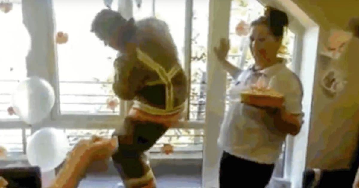 Fireman climbs through window with cake after hearing woman's birthday wish