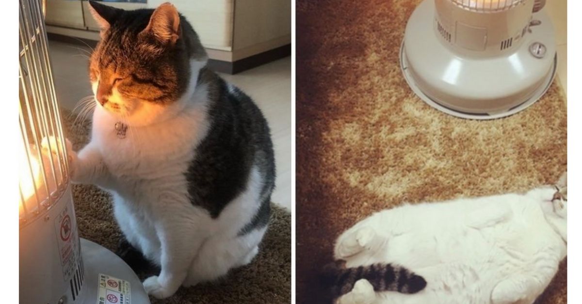 In an adorable series of photos, this cat takes a peaceful nap every day next to a heater