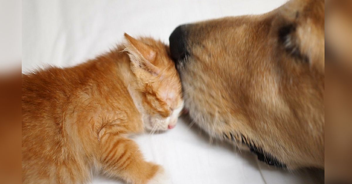 Street cat was in need of a mom so this golden retriever stepped up to fill the job