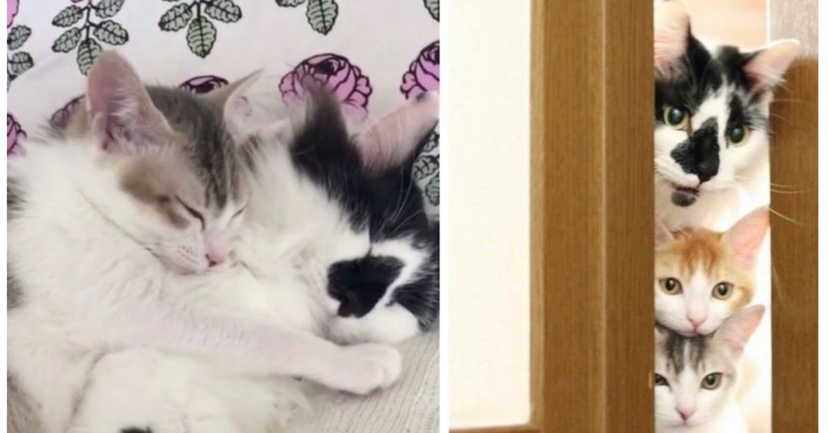 Older cat befriends helpless kitten after storm and you should see them now