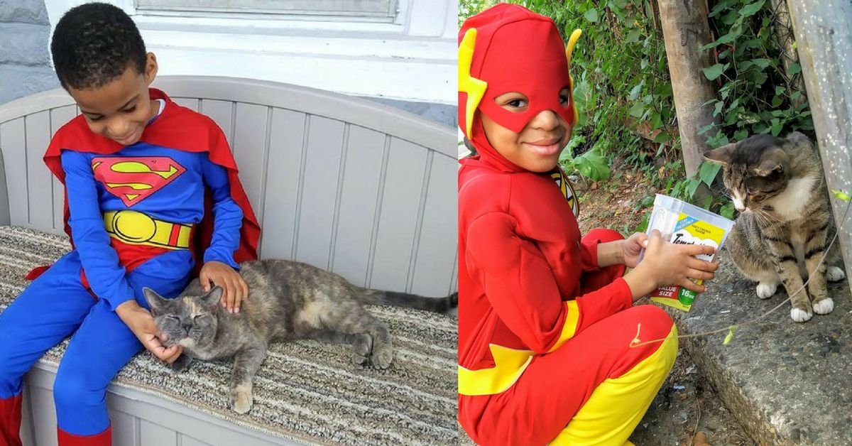 Little boy dresses up as superheroes and helps street cats and it'll be the cutest thing you've ever seen