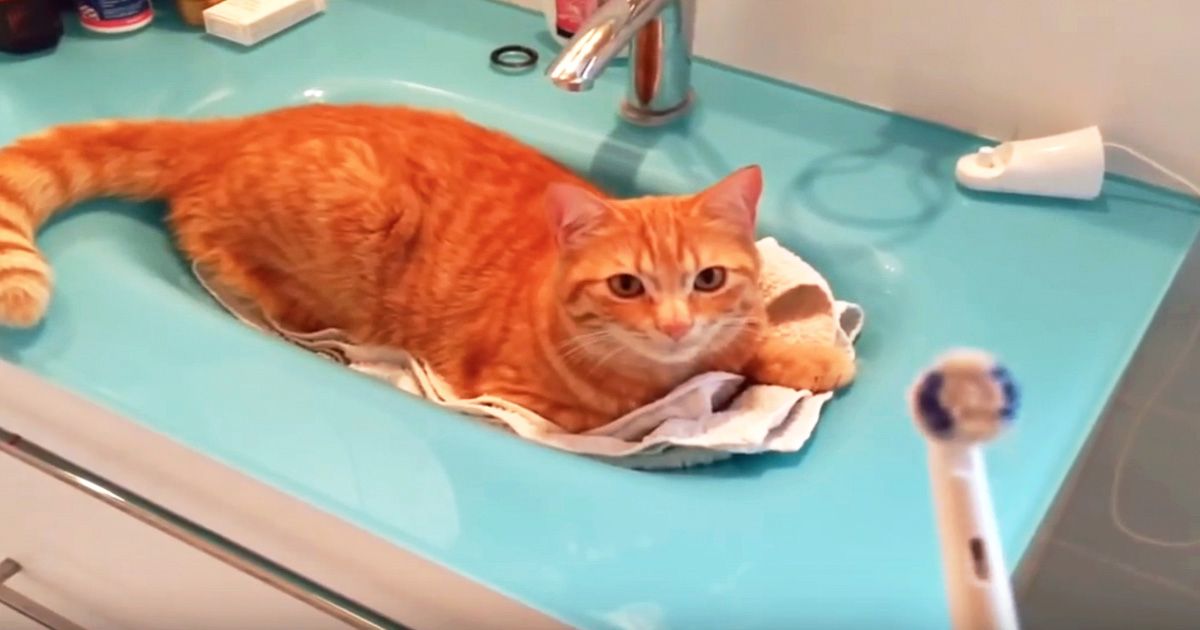 Watch how ginger cat reacts to man holding up electric toothbrush (video)