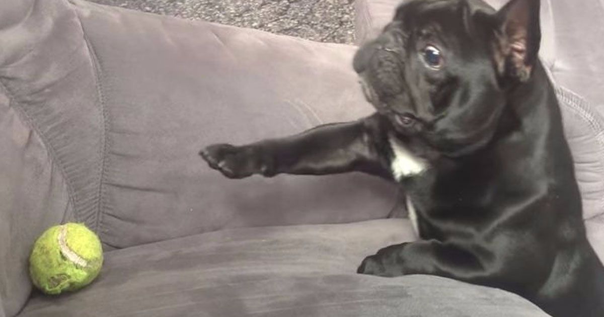 Dog just wants to try out for the tennis team, but just can't seem to get his ball